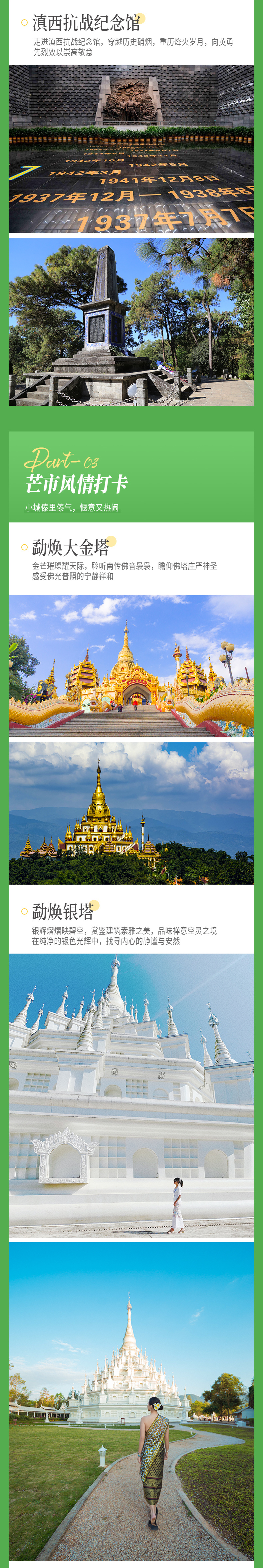 1、滇西抗战纪念馆周一闭馆,若恰逢周一,则与D3行程司莫拉佤族村寨游览顺序对调,费用不变。