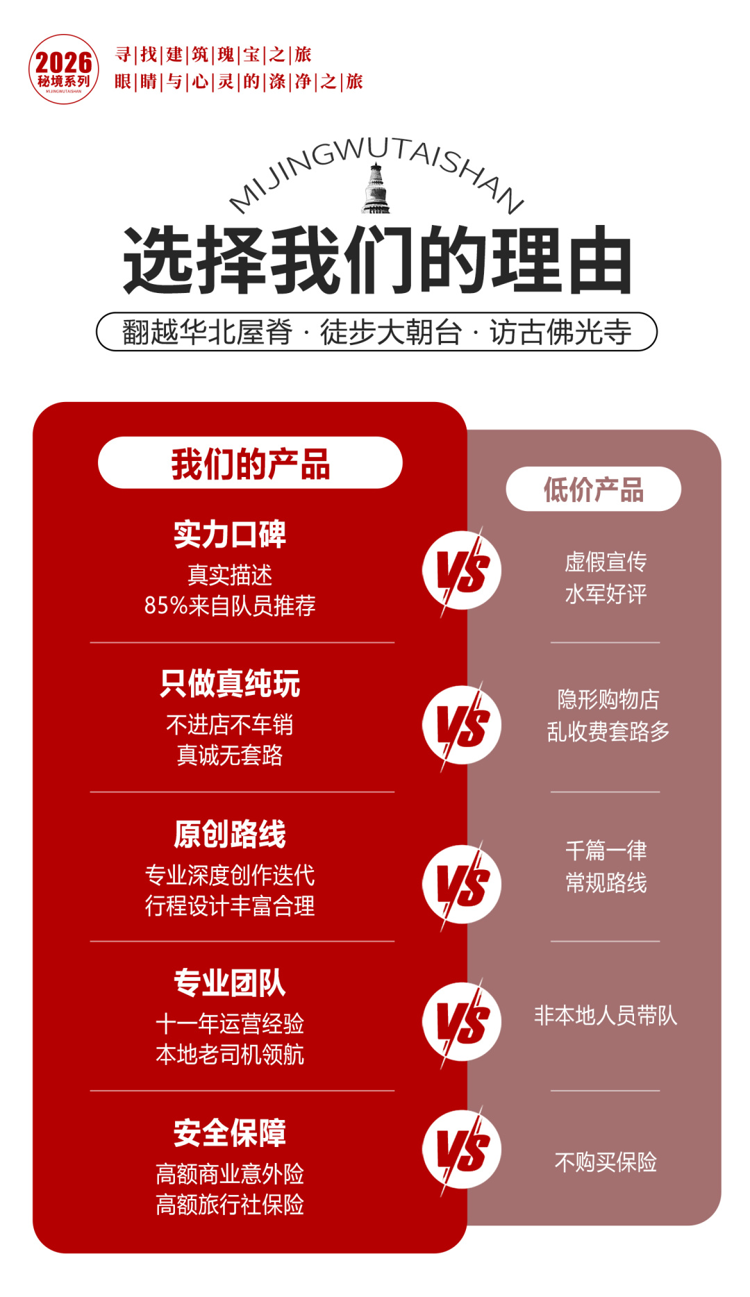 4、全程所涉景区门票费用(五台山首道大门票,佛光寺首道门票)(凭有效证件产生门票减免的,退还相关费用);