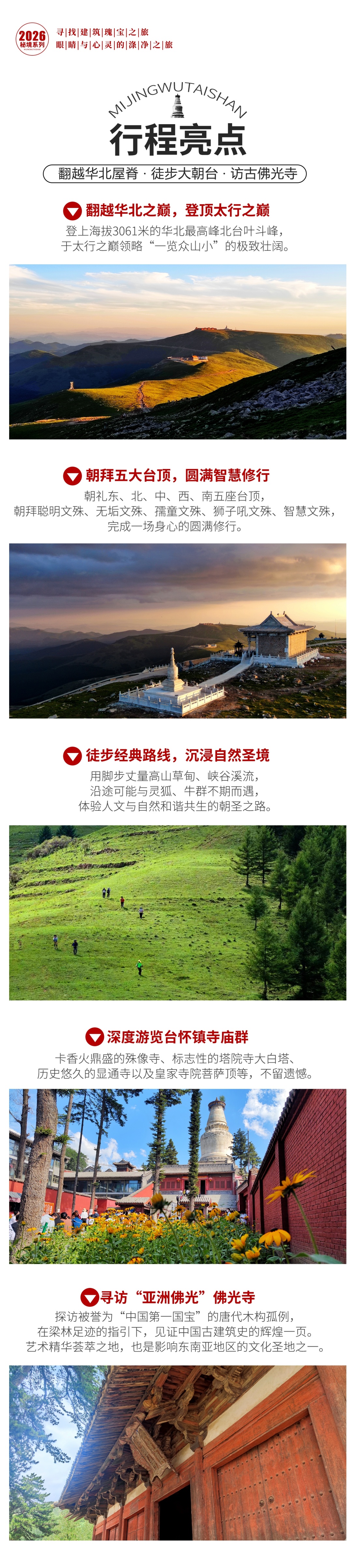 5、五台山昼夜温差较大,请根据通知信息,带合适的服装,用品出行;